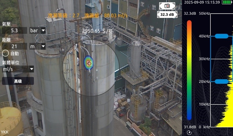 - 氣體洩漏、真空洩漏、異音噪音檢測……等實時可視化遠場聲源並定位,同時顯示洩漏等級評估