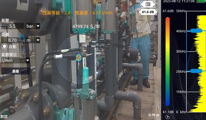- 可偵測任何氣體洩漏,壓縮空氣和危險氣體的洩漏檢測,評估洩漏量和經濟損失